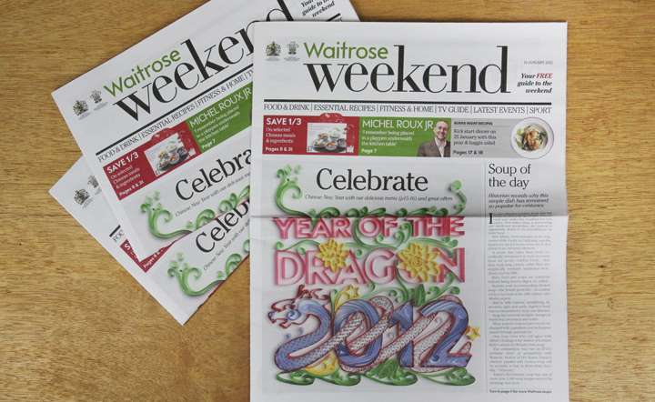Waitrose Weekend Magazine front cover – celebrating the 2012 year of the dragon.